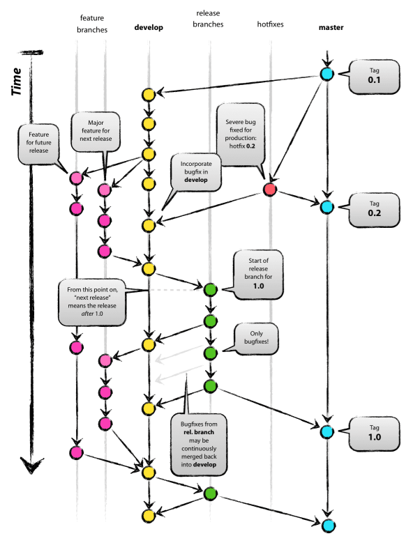git flow는 깃에서 제공하는 강력한 브랜칭 기능을 활용한 변경이력 관리 전략이다.