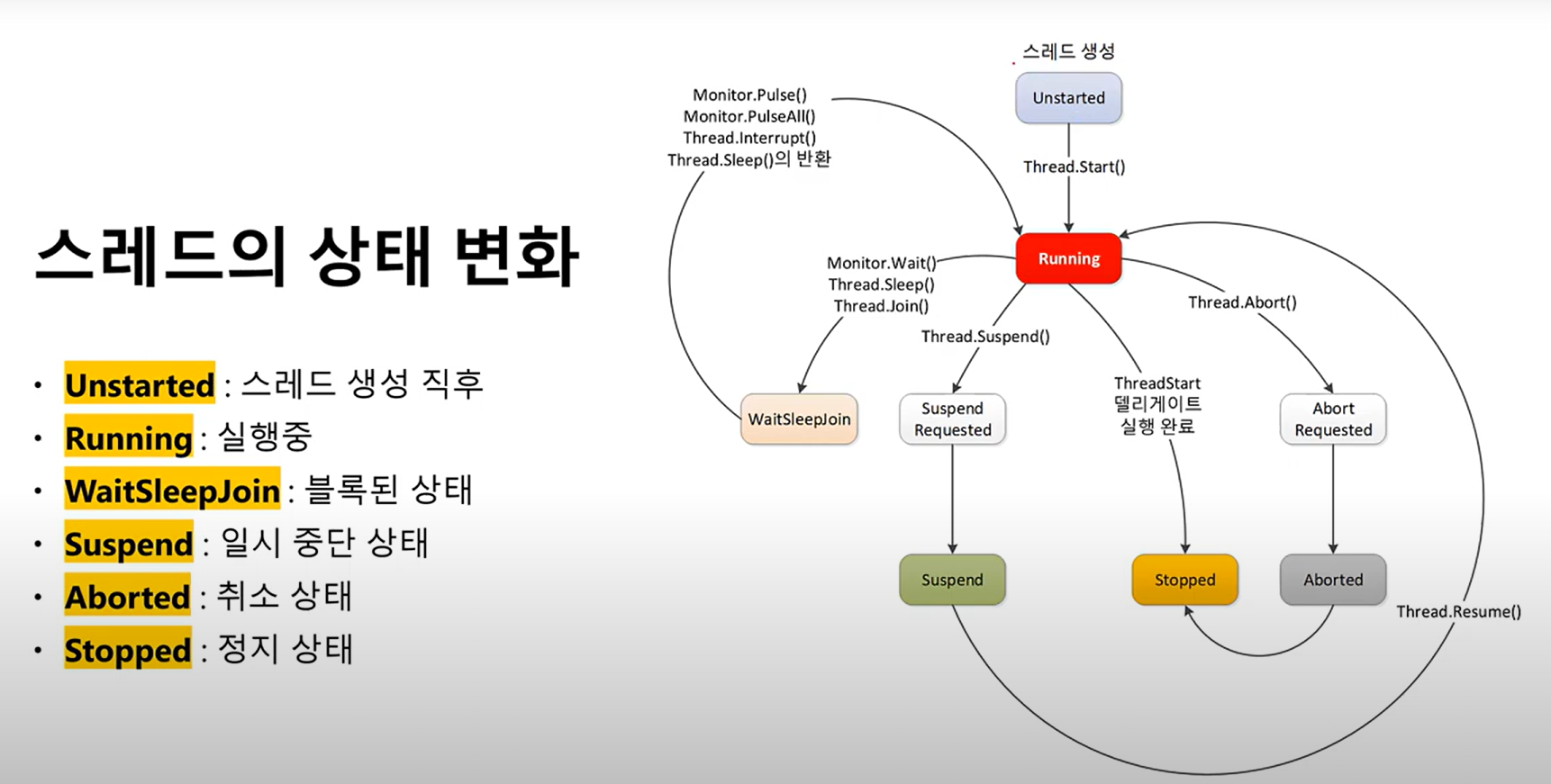 Thread.Abort();는 현재 스레드가 어떠한 상태이든 무조건 중단시키므로 현재 스레드가 해야할 작업을 모두 실행하지 않았어도 중돤 되어 오류를 발생 시킬 수 있다.