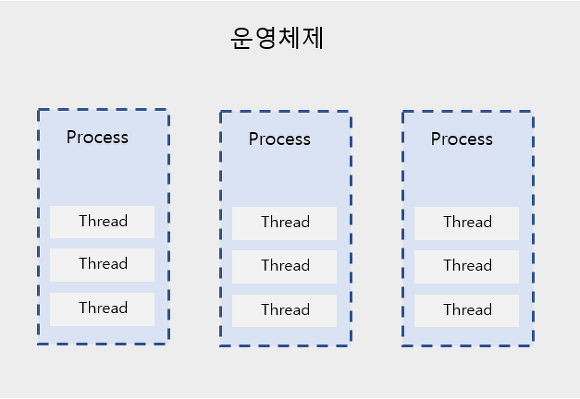 실생활로 비유하자면, 스레드는 학생, 프로세스는 반, 운영체제는 한 학년으로 나타낼 수 있다.