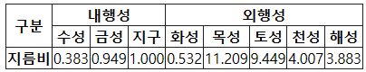 <th colspan="5">외행성</th>
