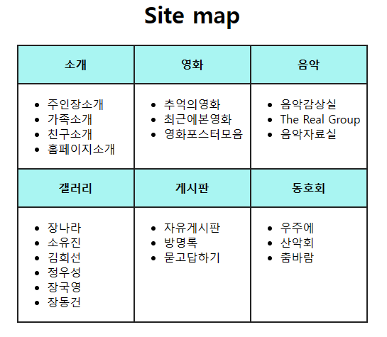 <th bgcolor="#A9F5F2" width="100px" height="50px">음악</th>