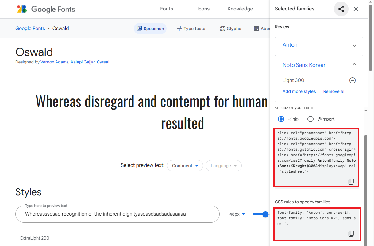 <link href="https://fonts.googleapis.com/css2?family=Anton&family=Noto+Sans+KR:wght@300&display=swap" rel="stylesheet">