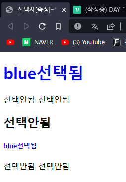 <p>선택안됨<span class= ‘class1’>blue선택됨 </span></p>