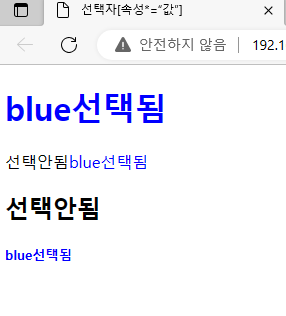 <h1 class= ‘class1’>blue선택됨</h1>