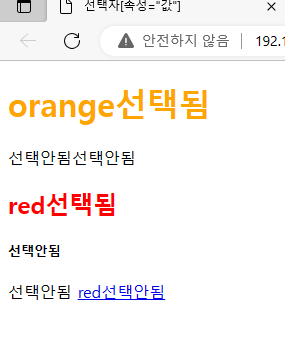 <h1 class= 'class1'>orange선택됨</h1>