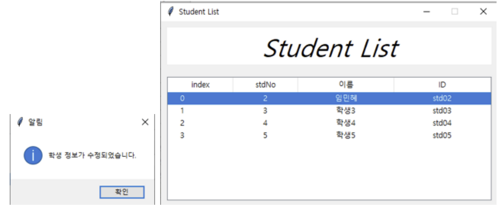 ▼ 수정 버튼 클릭 시 학생 정보 수정 후 Student List 업데이트
