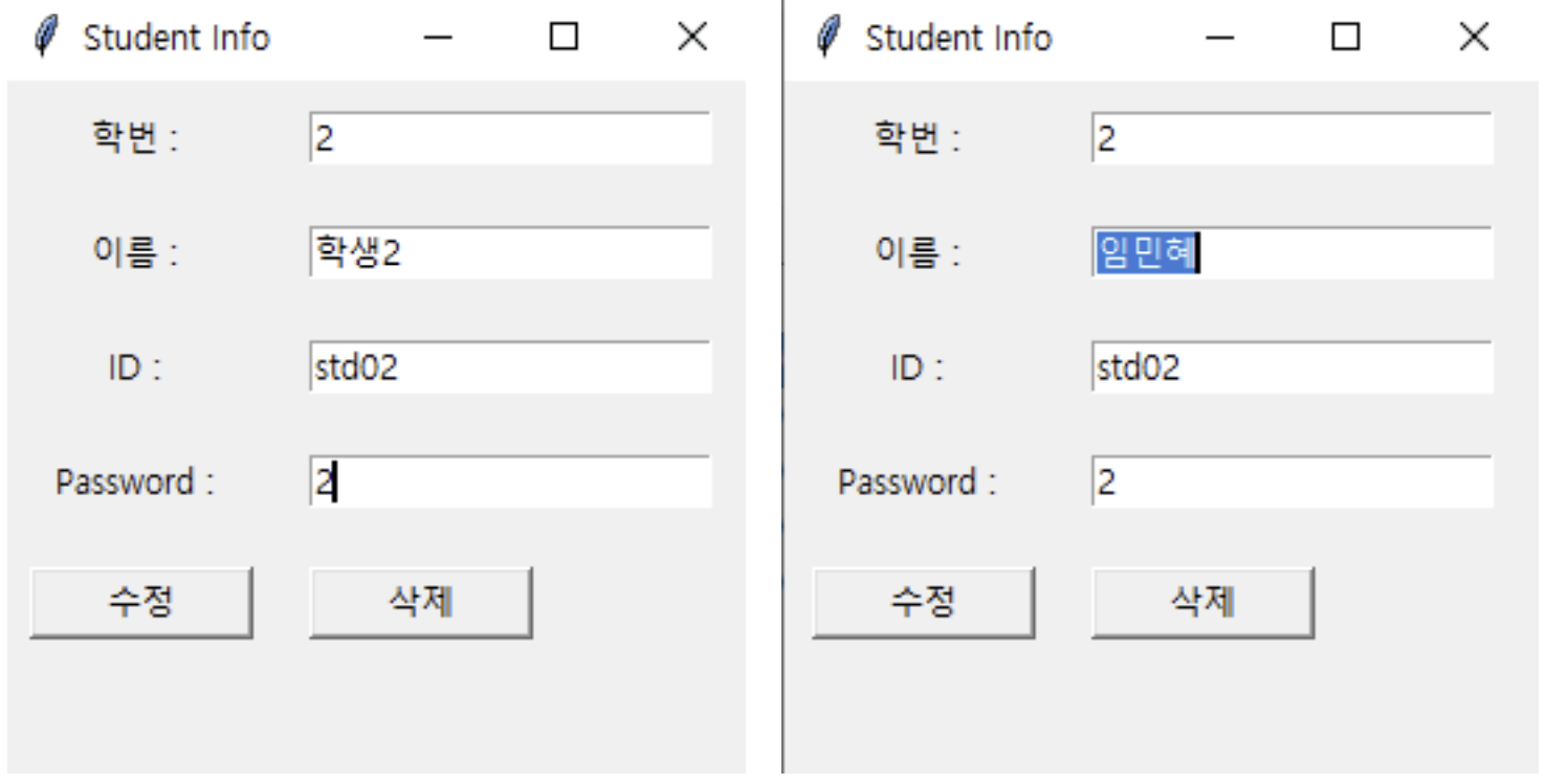 ▼ Student List에서 학생의 정보 클릭 시 Student Info창 실행