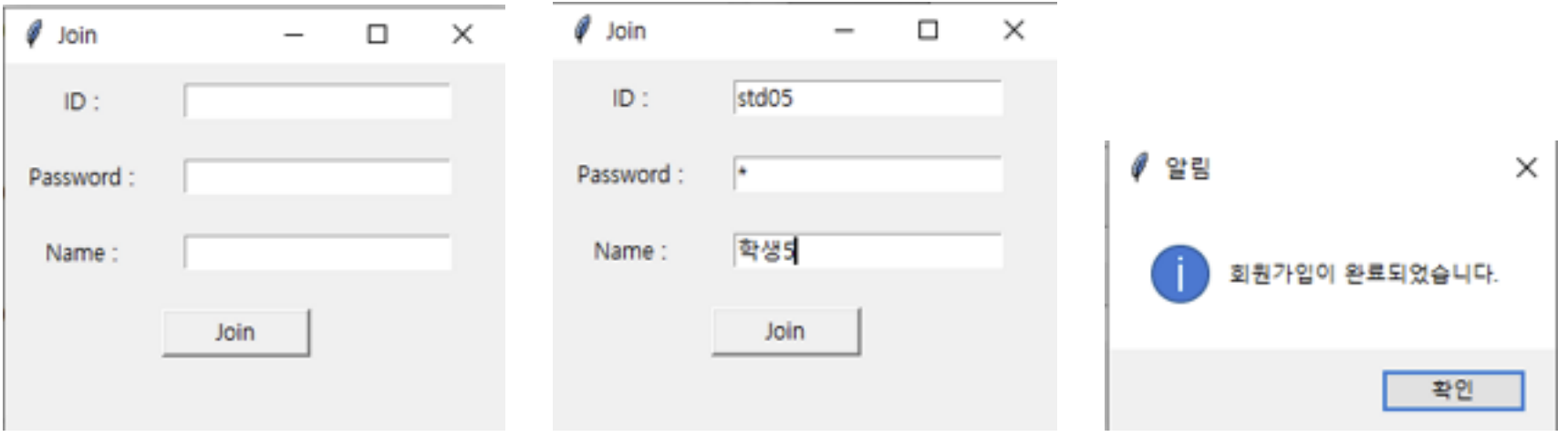 ▼ lojoin 클릭 시 회원가입 창 실행, 입력 후 join 버튼 클릭 시 Student List에 추가됨