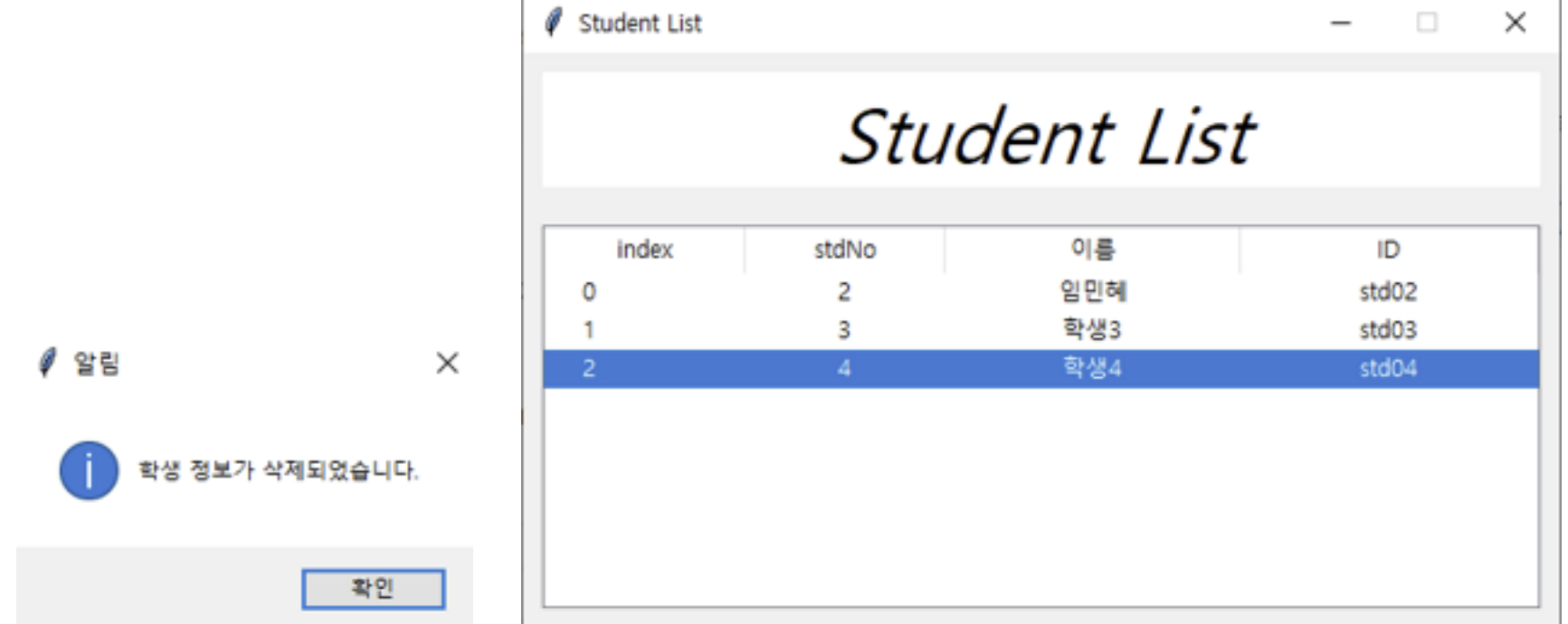 ▼ 삭제 버튼 클릭시 학생 정보 삭제 후 Student List 업데이트