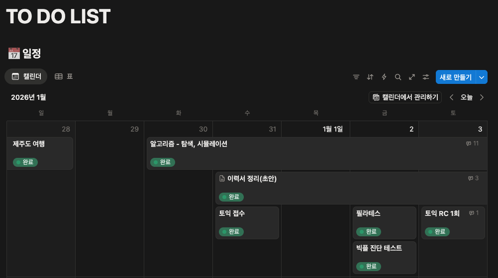 한 페이지에서 일정을 관리할 수도 없고, 자동화 기능도 없고, 캘린더도 없어서 쓰다가도 불편해서 누락되기 시작했습니다.