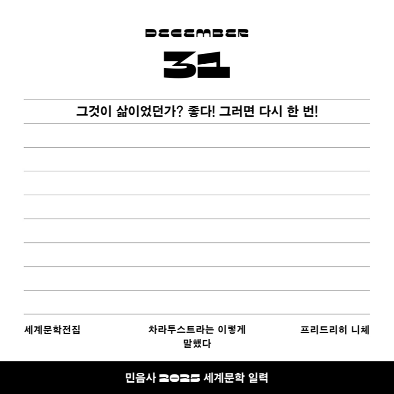 민음사의 25년 마지막 일력 문구가 너무나 인상 깊었어요.