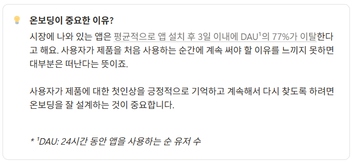 온보딩은 사용자가 제품을 처음 만나는 과정의 경험.