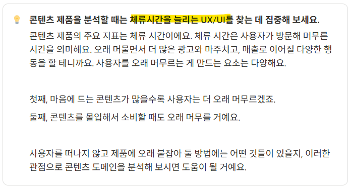예를 들어, 영상 콘텐츠는 디바이스 스크린을 계속해서 쳐다보고 있어야 하지만, 오디오 콘텐츠는 그러지 않다. 그보다는 개인화된 재생 목록을 잘 구성하는 것이 중요할 것. 그리고 텍스트 콘텐츠는 가독성이 사용성에 매우 큰 영향을 끼친다.