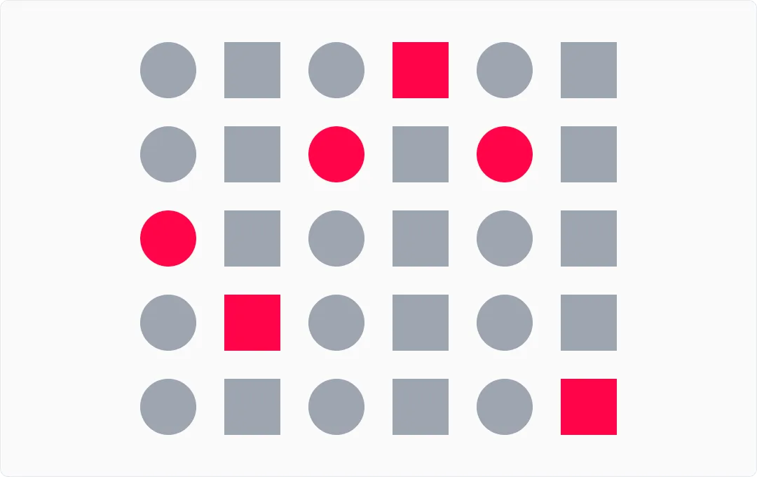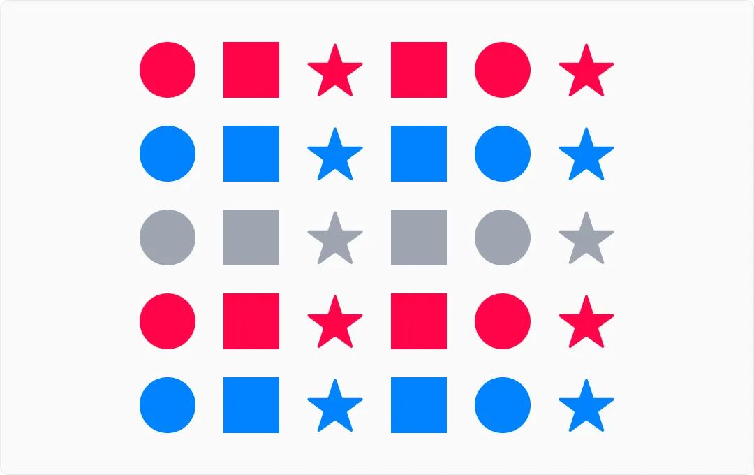 모양의 그룹화 효과는 크기, 색을 이용한 것보다 훨씬 약함.