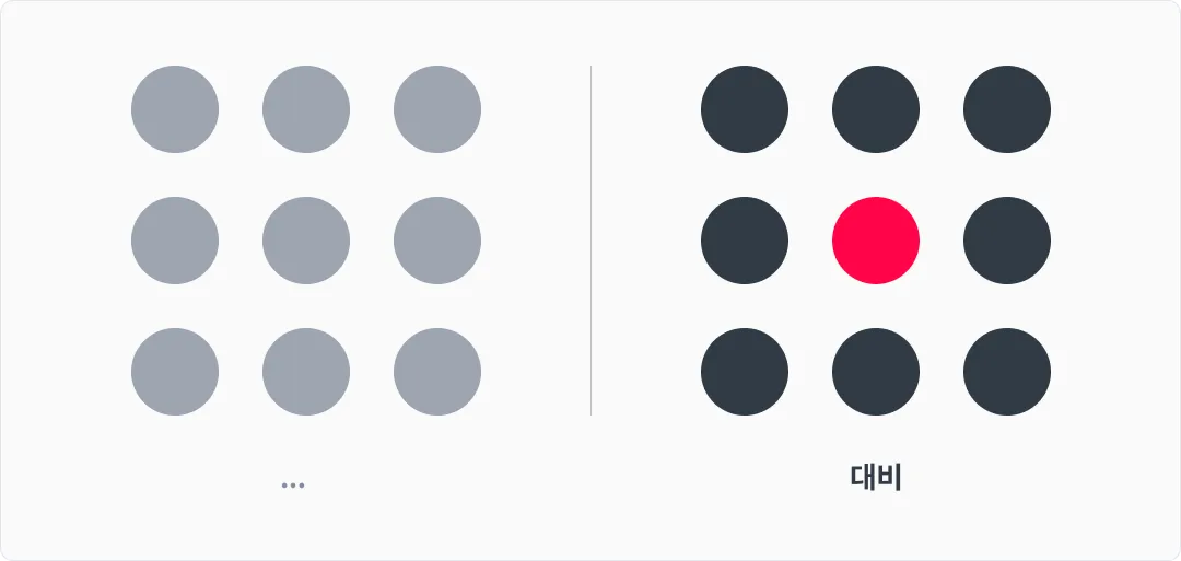 크기나 색상을 사용해 두 디자인 요소 간에 뚜렷한 차이를 줌.