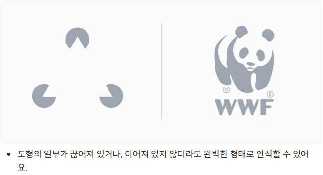 폐쇄성의 원리 덕분에 이미지의 일부가 잘려있어도 옆으로 계속해서 요소들이 이어질 것이란 걸 추측 가능.