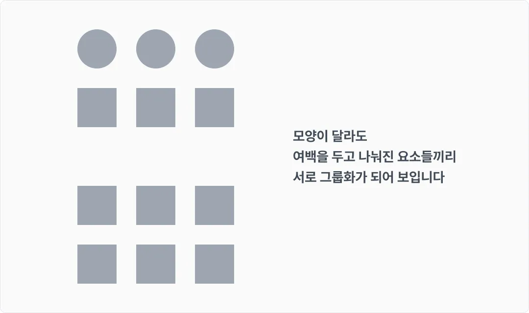 사람들은 가까이 있는 요소들이 멀리 있는 요소들보다 더 관련성 있다고 생각함.