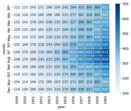 flights = sns.load_dataset('flights') # 1949-1960년간 월별 승객 수를 담고 있는 데이터셋