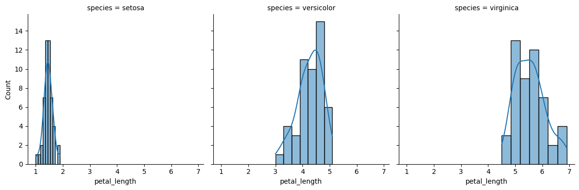 g = sns.FacetGrid(iris, col='species', height=4, aspect=1)
