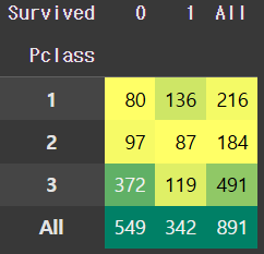 pd.crosstab(train.Pclass, train.Survived, margins=True).style.background_gradient(cmap='summer_r')
