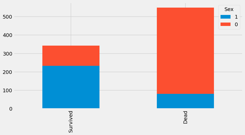 bar_chart('Sex') # 무슨 이유로 남성분들이 사망을 하셨을까?