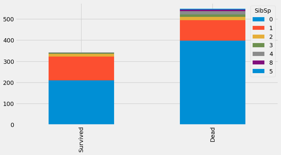 bar_chart('SibSp') # 함께 탑승한 형제 또는 배우자 수에 따라서 생존이 왜 다르지?
