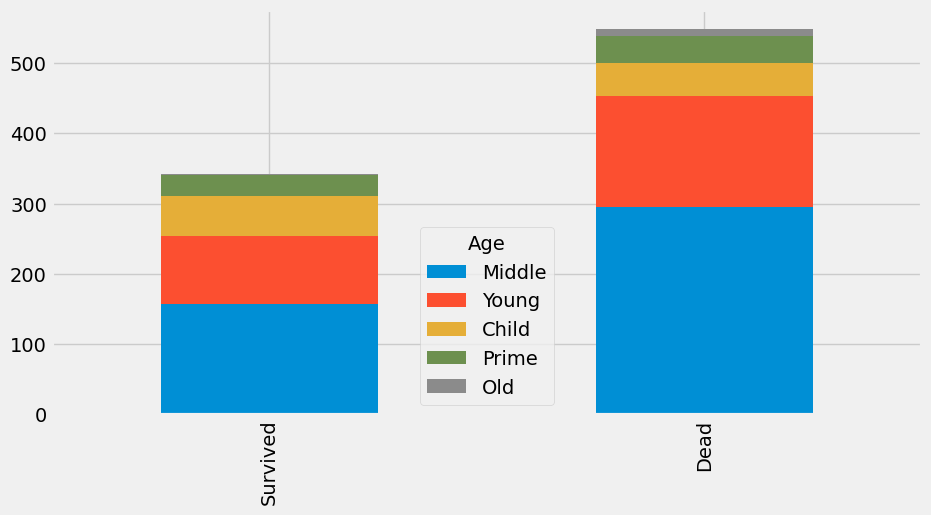 df.plot(kind='bar', stacked=True, figsize=(10, 5))