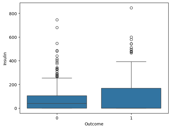 sns.boxplot(x='Outcome', y='Insulin', data=diabetes_data)