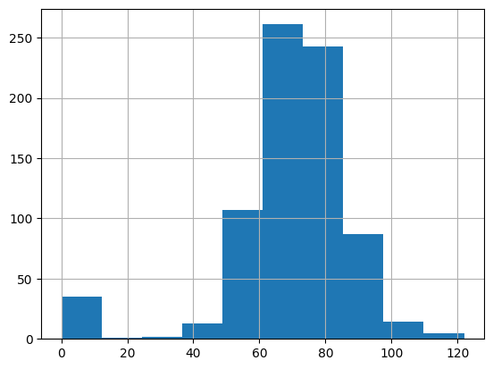 diabetes_data['BloodPressure'].hist()