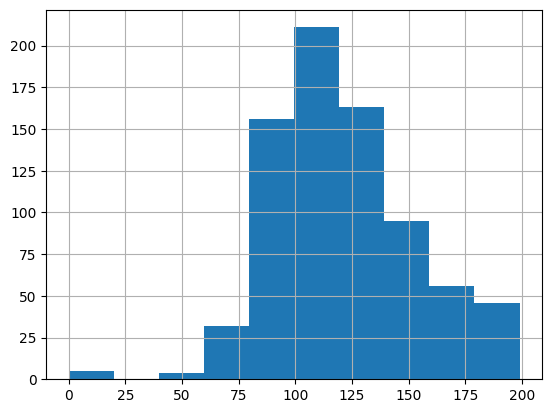 diabetes_data['Glucose'].hist()