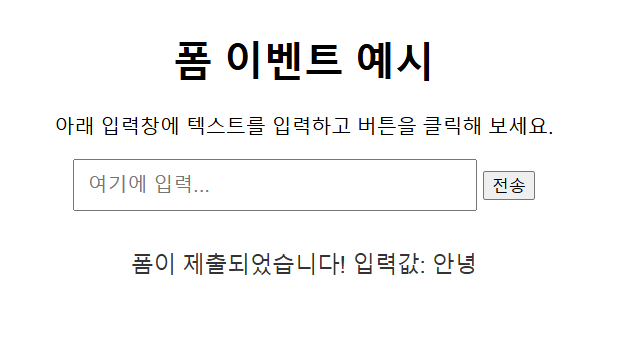 output.textContent = `폼이 제출되었습니다! 입력값: ${textInput.value}`;