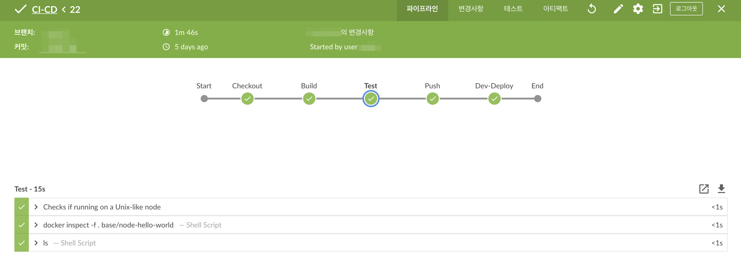 개발자는 CI를 적용하기 위해 Git Branch(Pre-release)에 Jenkinsfile만 추가하면 되고, 아래와 같이 Blue Ocean을 통해 실행 환경이 조성됩니다.