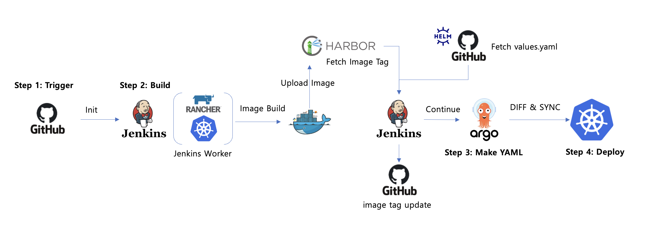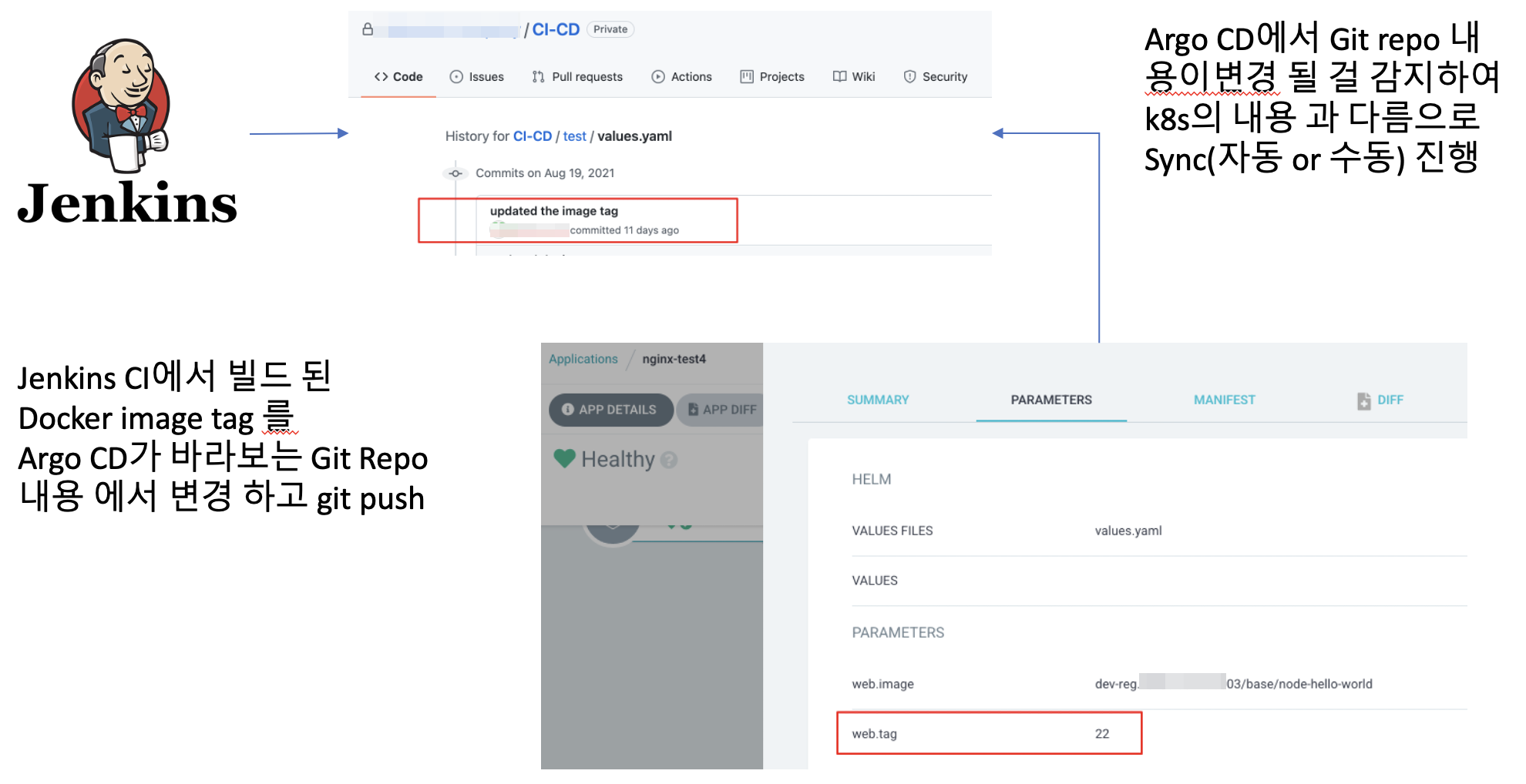 Jenkins CI와 Argo CD가 연동되는 CI/CD Pipeline에서 단계별로 실행되는 내용에 대해 소개합니다.