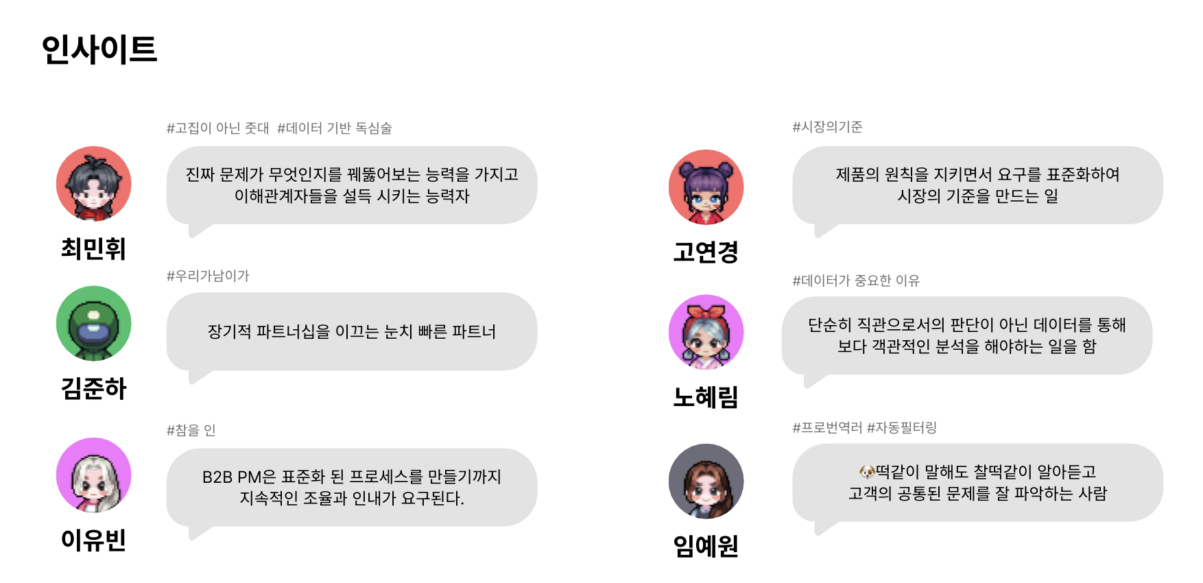 이후 우리는 각자가 생각하는 B2B SaaS PM이란? 에 대한 답변을 마지막으로 인사이트를 작성했는데, 여섯명 모두 다 다른 답이 나왔다.