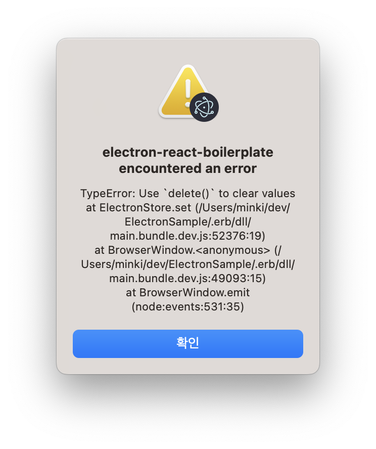 //오늘은 앱 종료 시 좌표값, 창 크기를 저장해서 다시 불러올 예정이니 //main 창에 'close' 이벤트 추가 //기존 'closed'를 사용할 수 없는 이유-> closed는 창이 완전히 닫힌 후 이벤트가 발생하기 때문에 closed한 시점에서 mainWindow 객체가 이미 닫혔기 때문에 getBounds() 메서드를 호출할 수 없어 오류가 난다(캡처 참고) mainWindow.on('close', () => { store.set('windowBounds', mainWindow?.getBounds()); //...생략 });