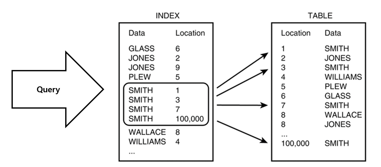 이 기준 컬럼은 최대한 중복이 되지 않는 값이 좋다. 가장 최선은 PK로 인덱스를 거는 것이라고 할 수 있다. 중복된 값이 없는 인덱스 테이블이 최적의 효율을 발생시키겠고, 반대로 모든 값이 같은 컬럼의 인덱스 컬럼이 된다면 인덱스로써의 가치가 없다고 봐야 할 것이다.