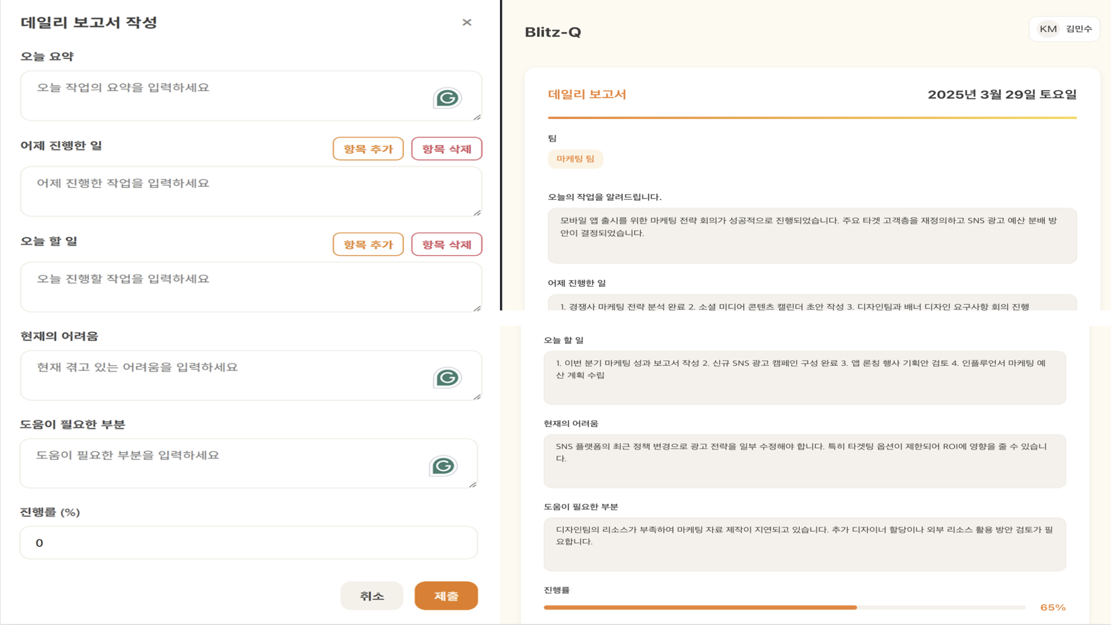 | 18 | Blitz Q | 데일리 스텐드업 웹 | 인공지능 요약, 회의 효율화 | 인공지능 기반, 웹 구현 |