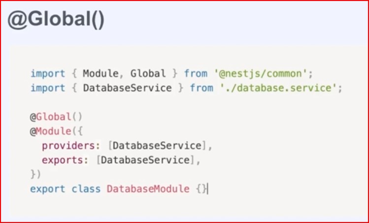애플리케이션 전역적으로 사용되는 모듈이라면 Global 데코레이터를 통해 전역적으로 설정 가능
