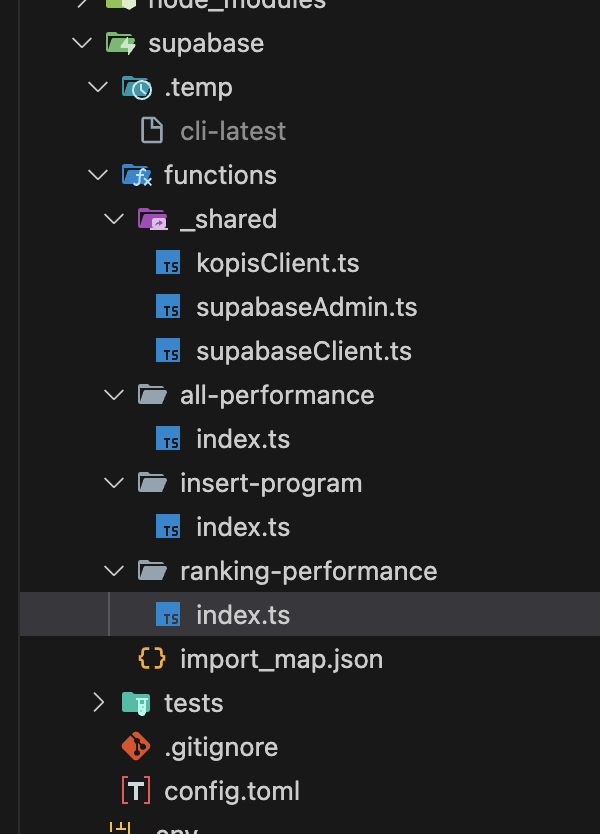 Supabase Edge Functions 폴더 구조는 공식문서 상 다음과 같은 구조가 좋다고 한다.
