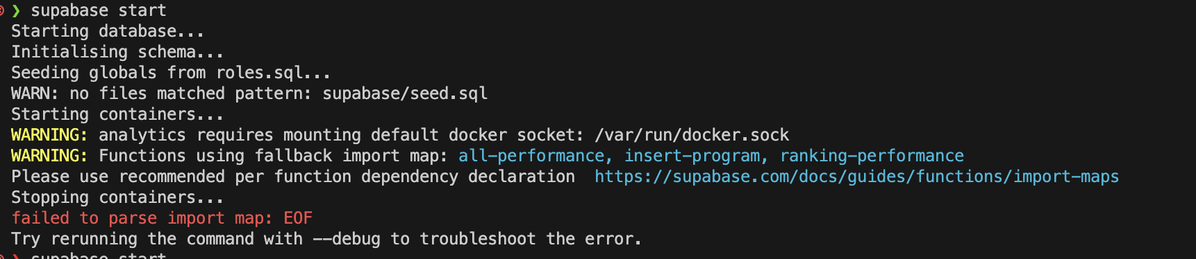 WARN: no files matched pattern: supabase/seed.sql