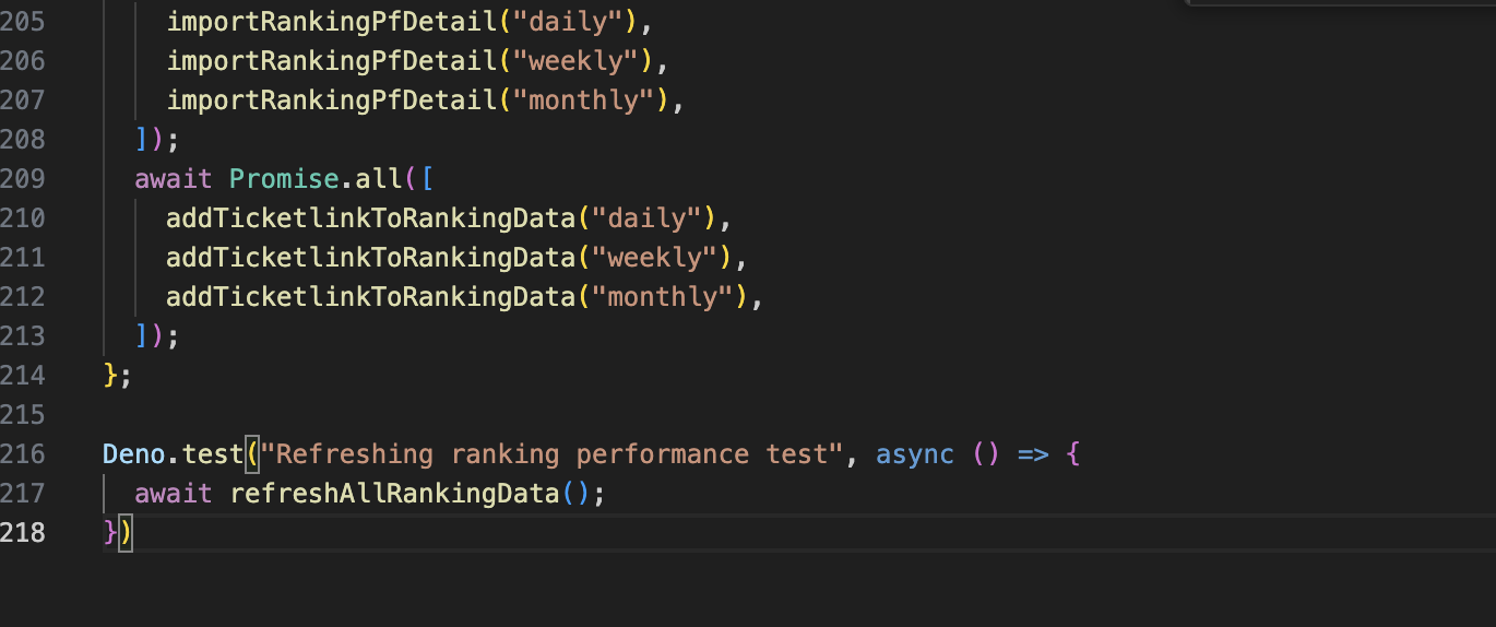 우선 테스트하고자 하는 함수가 있는 파일에 다음과 같이 Deno.test