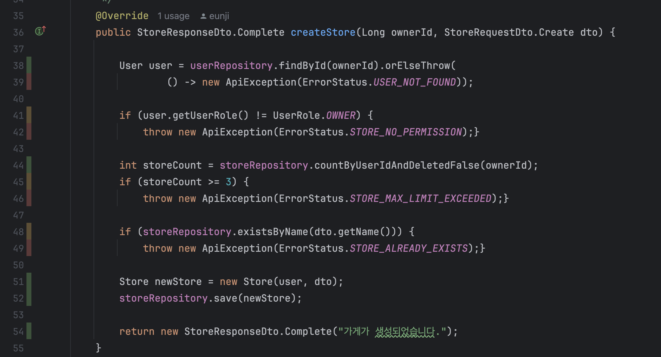 ➡️ StoreServiceImpl에서 createStore 메서드가 잘 작동하니?