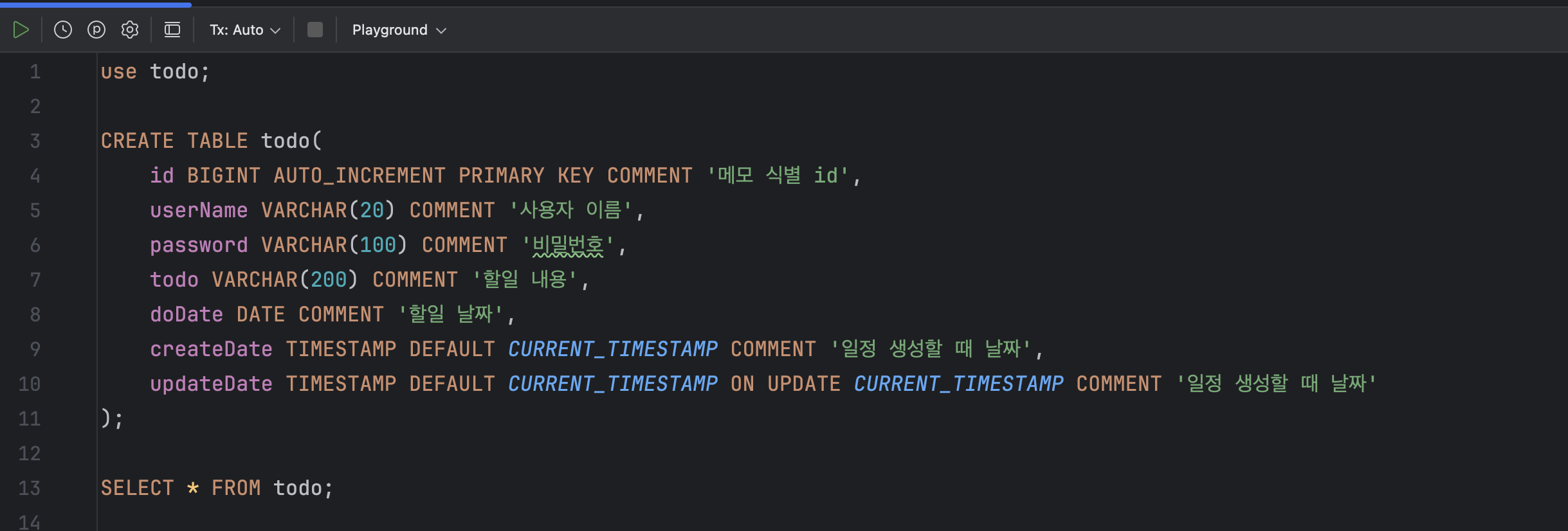 먼저 Spring DB에 todo 테이블을 만들었다.