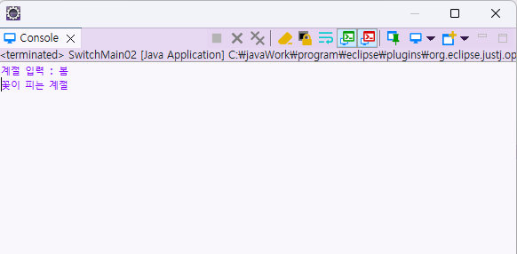 // switch 의 인자값은 long 지외한 정수형 ( byte, short, int ) , char, 문자열 사용 가능