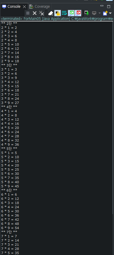 //2~9단까지 출력하기 위해 다중 for 문 사용