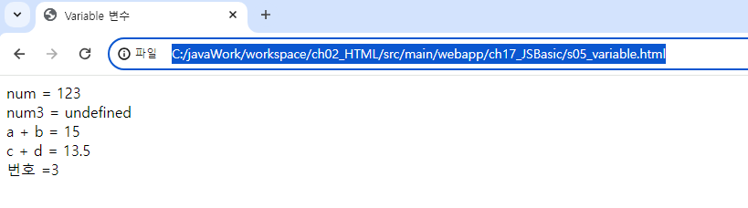 document.write('번호 =' + 번호);