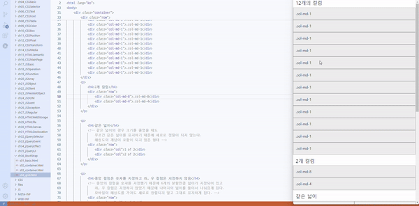 부트스트랩은 하나의 행이 12분할로 구성되어 있다.