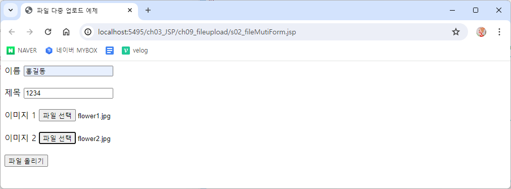 <form action="/ch03_JSP/fileMultiUpload" method="post" enctype="multipart/form-data">