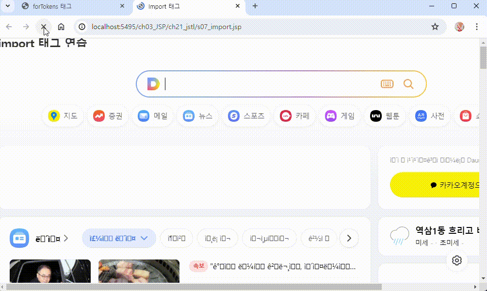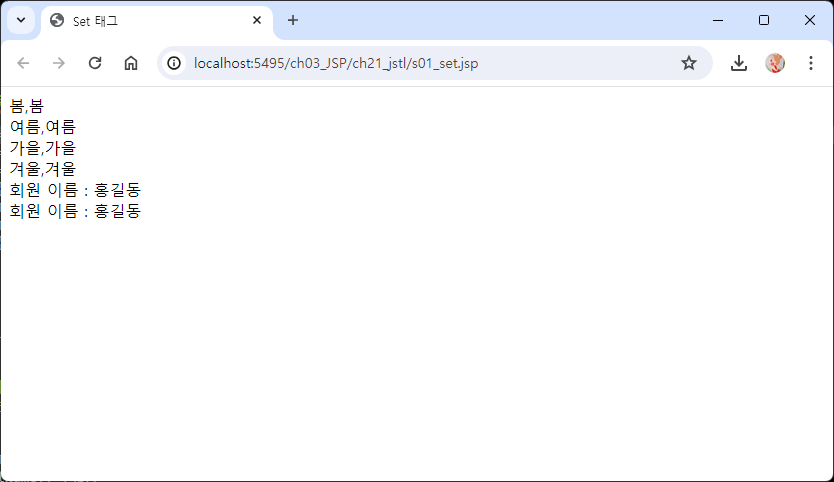 주소가 JSP로 바뀌지 않고 유지되기 때문에 Forward 처리되었다는 것을 확인할 수 있다.