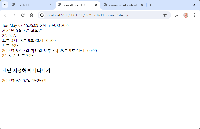 <fmt:formatDate value="${now }" pattern="yyyy년MM월dd일 HH:mm:ss" />